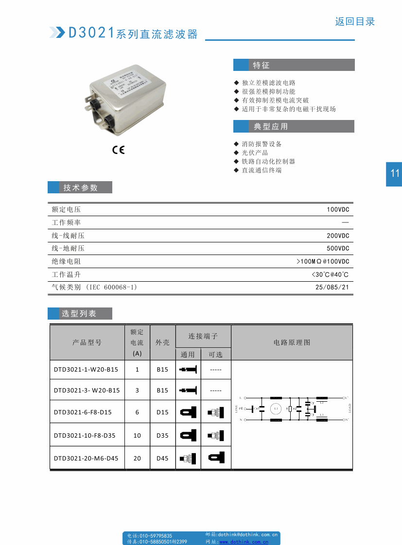 DTD3021系列直流濾波器